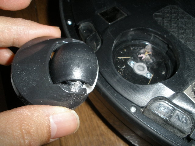 | さらに車輪を取ってみると、糸くずが絡まっています。 |