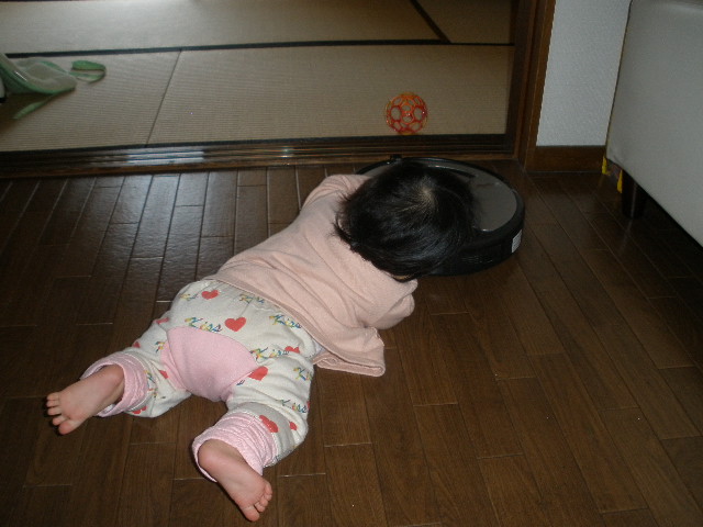 | 綺麗になったルンバは、ベイビーにも大人気です。 |